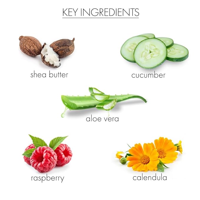 - Ingredients Sourced From Nature: Our collection of personal care products for women is made using natural ingredients with proven results. Our luxurious bath & body gel boasts a soothing combination of shea butter, raspberry butter, aloe, cucumber, and marigold to permeate the skin with ultimate moisture. Made with nature's best ingredients, our body wash is paraben, sulfate, & cruelty-free.