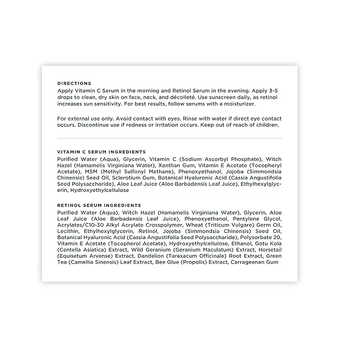 - EASY TO USE DIRECTIONS: Apply Niacinamide Serum in the morning followed by Vitamin C Serum. Apply Niacinamide Serum in the evening followed by Retinol Serum, then Hyaluronic Acid Serum. Apply 3-5 drops to clean, dry skin on face, neck, and décolleté. Use sunscreen daily, as retinol increases sun sensitivity. For best results, follow serums with a moisturizer