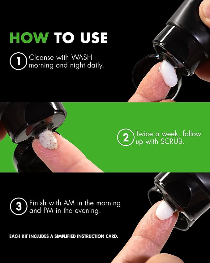 - Facial Exfoliating Scrub: SCRUB not only helps keep the surface of your skin clean but promotes new skin cell growth and helps even out skin tone too. Twice a week, work the SCRUB into damp skin for about 10 seconds, rinse off, and pat dry.