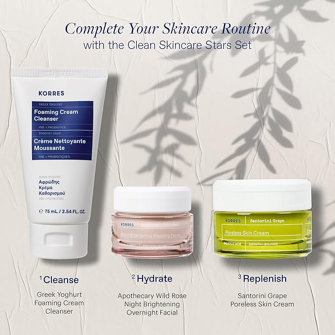 - KORRES: Korres is a clean ingredient-first Greek skincare brand. Our mission is to create beauty formulations in harmony with the planet and your skin—delivering healthy, transformative results without the harsh chemicals. Our Greek Yoghurt Foaming Cream Cleanser is dermatologically tested, vegetarian friendly, silicone free, cruelty free, and housed in recyclable packaging.