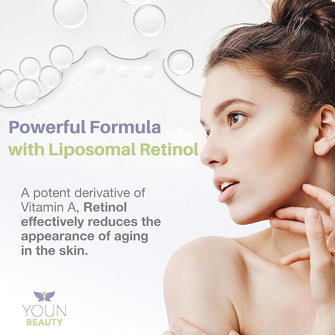 - GENTLE AND WELL TOLERATED – Our YOUN Beauty Retinol Moisturizer is formulated with stabilized, liposomal retinol complexes at 2.5% inclusion rates. These delivery systems provide approximately 0.06% active retinol. This formulation is highly effective and well-tolerated — ideal for consistent, long-term use. Unlike higher-strength retinols that are typically used only a few times per week, our formula is designed for gentle, ongoing use and visible results over time