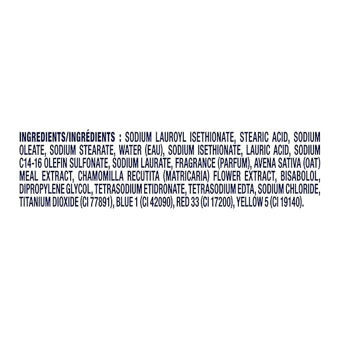 - Dove Anti-Stress Cream Bar cleanser with blue chamomile and oat milk scent